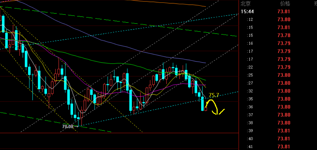 第一,黄金方面:上周五非农前,黄金一直处于1918-1910区间内窄幅横盘,亚欧盘整体保持低位弱势,按技术形态来讲美盘存在进一步的下跌;但由于非农数据预期和前值对比,在结合ADP小非农公布值,市场预期大非农是利多黄金的,因为这个担忧,所以稳健等数据公布后再看;结果公布出来是意外大幅利空黄金,价格直接击穿1900,然后等1910顶底去介入空没机会;随后继续跌破1892-93日线前通道上轨支撑后,也等反抽1892-93跟空也没机会,整个夜间就是直接一路弱势慢跌不反弹,因而也就看戏了一日;有一位学员自己忍不住下了多单,半夜一两点在线提示她1862-63是支撑点,跌幅差不多,此处会有一些反弹,去仓位多些加仓多,到了今日现在1877了,虽是逆势,但这是解套最快的办法;