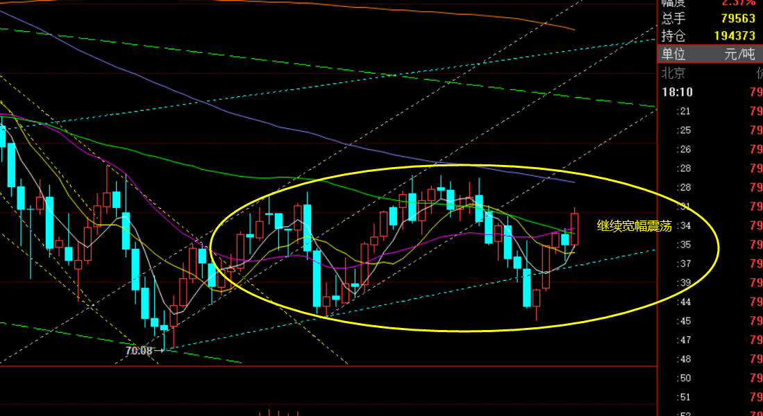 原油方面:昨日依托日线中轨、66日共振承压78.5-78.8区域,同时小时线macd严重顶背离状态,持续震荡走高处于逼空,一旦破位中轨下去,逼空结束,就会有一波下调修正,因此指出78.5看跌,成功到位77一线;今日早盘小时线仍处于中轨78下运行,提出此处有压制,但价格运行数个小时后,多次反复刺破中轨想上攻,一个阻力位置被反复触及,压力作用就逐步削弱,则容易上破,因此及时处理持仓,完美躲避欧盘借助一个消息引发的大幅急拉;可惜一下子拉的太快,力度过猛,小时线回踩确认中轨跟涨也就没机会;从图中日线级别,近期笔者一直讲的四个字就是“宽幅震荡”,区间83-70之间进行上下大幅度的震荡反复,处于底部多空拐点争夺期,因此对于日内来讲,短线方向容易随时变化; 接下来,美盘留意78.2支撑,阻力81.3-82,当前处于上行通道内运行震荡对待,小时线中轨仍是一个判断方向变化的重要参考指标;