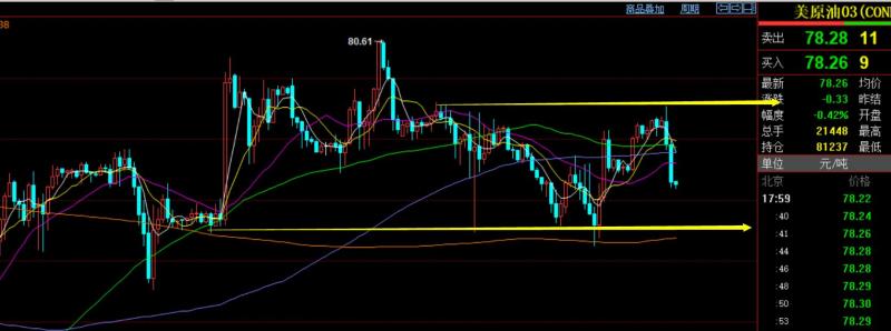 原油方面:这几日油价也比较反复,处于一定高位箱体内运行 ,不过提出的日线10均线支撑两次都回踩撑住,今日继续关注此均线得失情况,上移77.65一线;短期压力日内已经出现了79.5一线,因为小时线出现顶部大阴承压迹象,且失守10均线有效,那么隔夜起来的这波逼空也就结束,转为区间震荡;因此晚间留意77.65-79.5之间震荡运行,以3月份合约进行报价,若转换4月新合约的,价格对应加0.2左右;