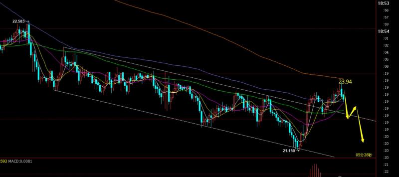 白银方面:虽然白银突破了图中的下行通道,但小时线年均线阻力21.94下压力应该有,前期22-22.1一线也是多处承压,因此建议21.94-22.1下仍去看跌为主,若站上22.1则失败,下方支撑21.6-21.5,破位失守则重回下行通道走弱,指向21.1、20.85;