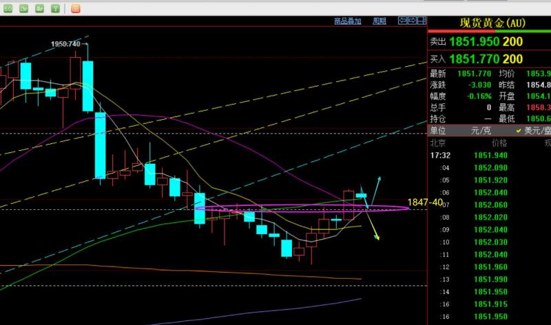 第四,黄金小时线级别:隔夜逼空连阳一波,今日暂时支撑1850,承压1858,空间不大; 1858已经分析过,它处于618分割阻力点,也是短期通道上轨;而1850是中轨,也是通道下轨,欧美盘重点留意的就是两者之间的破位情况;有效破1850,则试探1847-45,以及1840概率加大;反之,突破站上1858,则冲击前期1870上概率加大; 结合macd的顶背离状态,此时高位是不太适合追涨,即便处于震荡持续逼空,到最后迟早会遇到大幅跳水,类似前期1960那一波;因此,要参与企稳看涨的,则等待1840上方稳定信号;而参与看跌的,早盘1858下已提示阻力了;