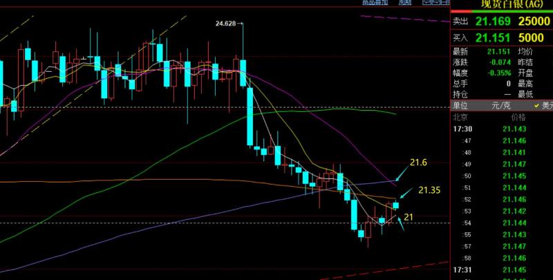 第二,白银方面: 黄金上周不成功,但白银还是可以的;指出21.1阻力,逢高仍继续看跌,周四跌至20.6低点,周五跌至20.8低点,作为短线空间还是不错的;