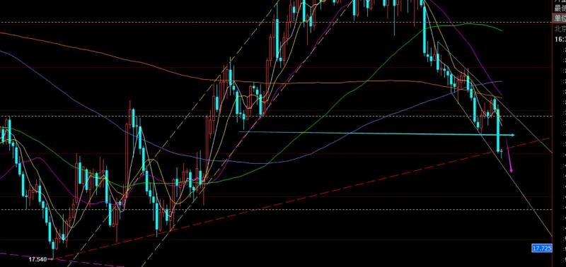 第二,黄金4小时级别:两根大阴砸下去,直接转极弱,10均线1828下作为反压,估计想触及都暂时难,支撑1808-05一线,失守则进一步破底走弱;