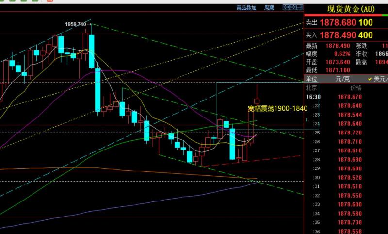 第四,黄金小时线级别:一早跳空拉升至1894,但作为近期震荡行情来讲,早上发力延续性都相对差,也是作为周末消息的一种释放;随后展开了反复的上下整理过程,高点从1894下移 1888,而低点两次支撑1872,缺口点还未得到回补,差一些;此时留意下1894-1888.8的趋势阻力线承压点1880,若又突破站上此处,意味着10均线的破位失守得不到延续调整,容易继续高位反复磨,届时又要关注1890下或1900下压制情况;反之,若失守1872下行,缺口则会得到回补,另外也可能会延续下滑些,1867下,关注1862,以及1855,强支撑则是1850下,暂时下跌不了多少,整体震荡目前而言是偏多些;因此,一旦回补缺口了,就耐心等支撑位企稳看反弹运行;除非直接下破1840,才能立马再次转变弱势格局奔1820及下方;