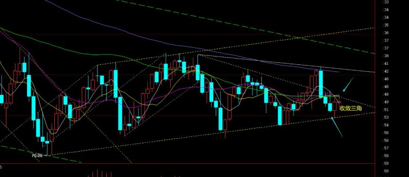原油方面:上周承压80.9一线连阴回测,再度打入原先的收敛三角通道内,而此时又开始多空争夺选择中;上轨下移77.3,下轨上移75,看这两个位置的上下得失;在未走出前,则按上下轨震荡对待;