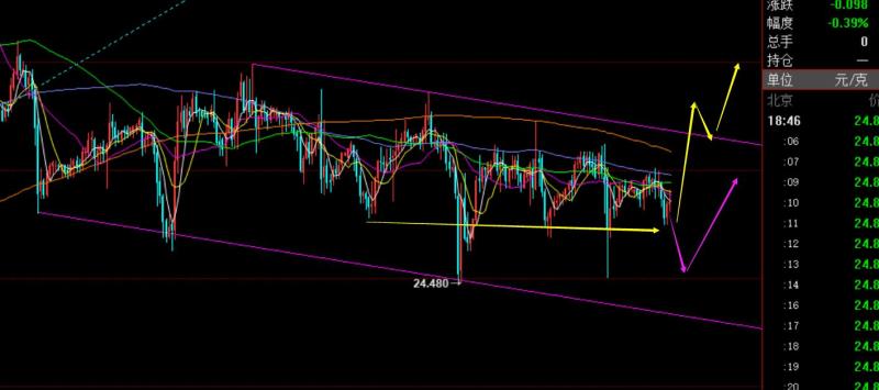 第二,白银方面:昨日计划回踩24.8一线支撑多,美盘期间跌幅比预期也稍过大,触及了24.5.,不过见小时线企稳探底拉升出长下影,即24.6一线可仍多试探,尾盘拉升25一线拿下;