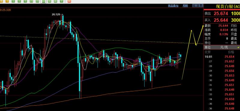 第二,白银方面:昨日窄幅运行于25.6-25.3之间,符合给出的区间;