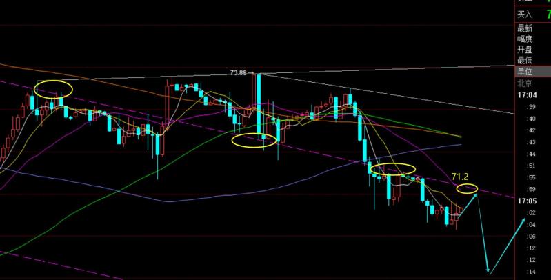 第三,原油方面:昨日判断74一线成为短期重要的承压关口,虽突破日线下行通道的上轨阻力,但延续力度并不强,因此拉高采取承压看跌回测,白盘布局73一线做空,美盘布局71.4继续空,最低今日下探接近70关口,都成功拿下;