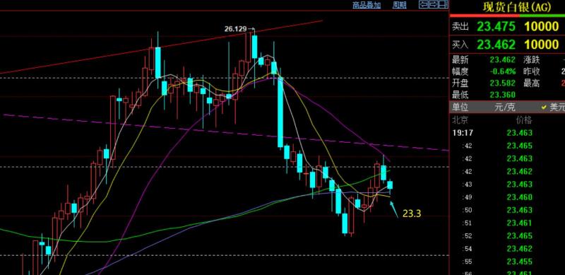 第二,白银方面:它的走势却比较符合,数据一空一多,走势是偏震荡,跌幅并不大,处于日线短期均线上震荡,而黄金是有些跌幅过大了;