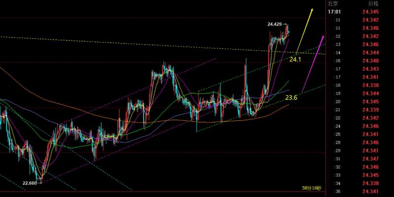 第二,白银方面:研报指出23.48上继续看涨,最终大幅拉升突破24.2,符合预判;