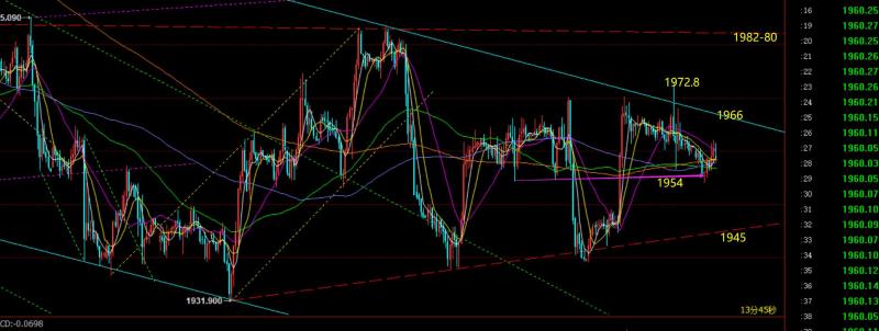 第三,黄金4小时级别:承压10均线1961一线,且macd会有所趋向死叉,暂时还无法判定企稳,需观察10日得失情况;若能站上10日,且macd零轴上方再度红柱放量,那么价格可以短期拉升;