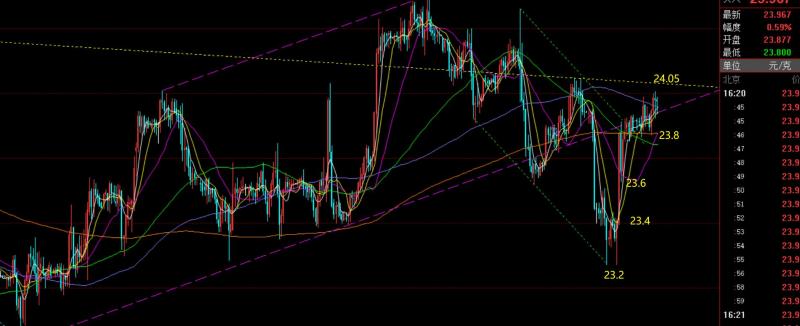 第二,白银方面:昨日亚盘跳水力度相对大,从23.9直接跌至23.3,欧盘企稳23.2后,美盘又打到23.9,走了一圈回到原点;研报中也指出,拉低仍尝试低多,不好追空;