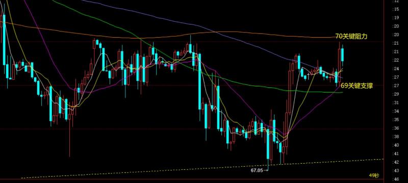 原油方面:好巧不巧,原油也刚好到了区间性选择时刻,小时线中轨支撑69一线出现,阻力70这几天的横盘压制点; 对于日线宽幅震荡来讲,67-75区间运行不变;由于67底部再次确认稳定,隔夜持续大幅拉升,因此今日还是看企稳反弹延续;以69作为节点,守住它,则认为突破70站上概率会较大,后市72-73就会逐步试探;反之,若美盘又掉头向下失守69有效,那么又会回到67-70区间内的反复震荡;