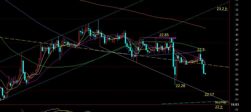 第二,白银方面:昨日22.8-22.5区间,也因为数据利空,选择先下探急跌,触及22.28研报提出的支撑点,进行一波探底拉升;
