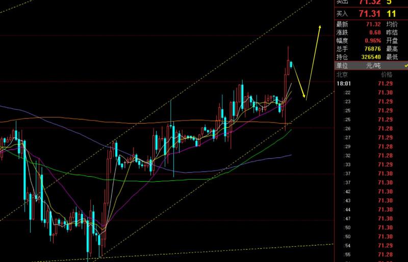 原油方面:中期和短线仍处于宽幅震荡中,还未产生明显的趋势方向; 日线震荡区间67-75, 而下轨67三重底稳定后,就一路提出逢低看涨反弹为主,波段持涨,目前为止,一路连阳符合预判,也站上了中轨70关口,本周有望进一步的反弹延续,测试72-73压力区,再往上是前期通道上轨74附近;从小时线通道看,早间提出70一线支撑精准企稳,欧盘一波急拉比较舒服,抵达71.4目标; 今晚继续留意中轨和通道下轨,70.3-70.5上继续看涨反弹,破高切勿追涨,因为macd顶背离一直存在,积累也比较严重了,预计后期72-73,极限74下容易大幅转向;