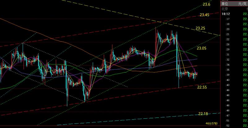 白银方面:直接看小时线通道指引,短期支撑22.55 和22.18两处,短期阻力23.05、23.25、23.45和23.6,预计还是区间内运行为主; 看公布的结果来定,若利空先拉低等企稳反弹,应该跌不深的;若利多,就等回踩跟多,然后相对高位阻力承压了,再看一些回测修正;