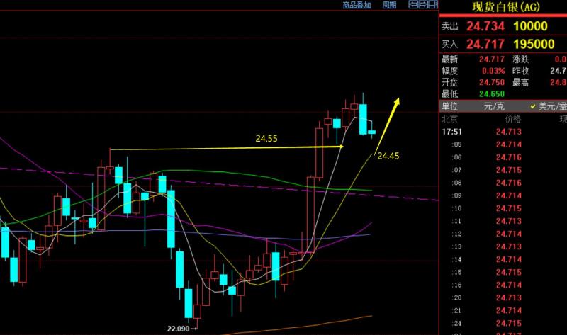 白银方面:昨日收阴,暂缓前几日的单边强势拉升,不过也黄金一致,调整至10均线24.45上,也随时会企稳再次上攻;短线的回踩修正,是为了后期更好的上拉;另外24.55作为顶底转换支撑点,也存在买盘;因此,留意24.55-24.45支撑逢低仍看涨,阻力25.3,上破则继续发力;