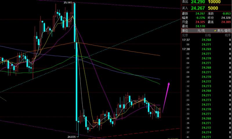 第二,白银方面:24上方也符合预判存在支撑反弹,最终抵达24.45下靠拢;