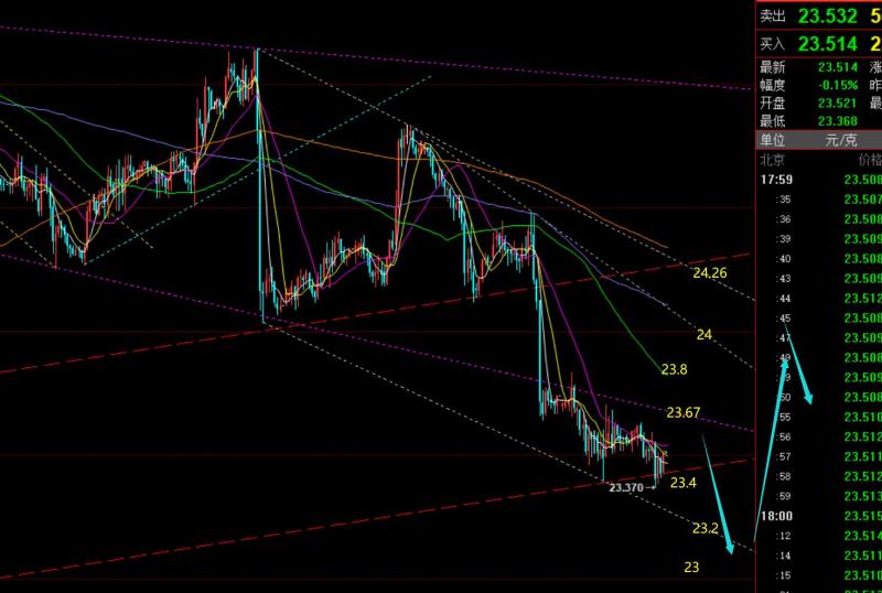第二,白银方面:昨日压制23.8震荡续跌走弱,最低23.4触及反弹震荡,研报给出的区间23.8-23.4刚好是符合的;