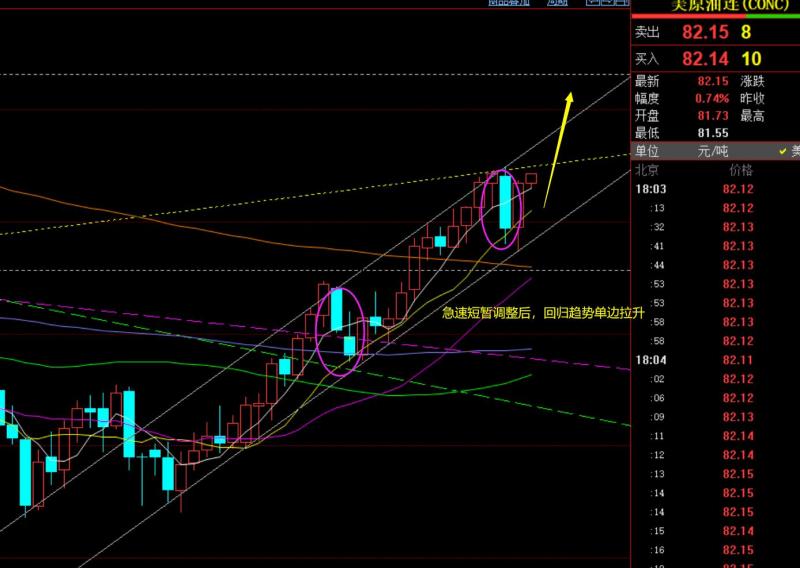 第三,原油方面:黄金默默无闻,昨日原油却非常的劲爆活跃,研报中明确指出趋势看涨是不变的,急跌只是短暂修正,一旦企稳78.8节点支撑,则容易回归单边拉升,站上81则发力上攻,结果走势很完美符合推演思路,最低78.7启动强势单边拉升,冲击82关口; 盘中短线给出79多、80多、81仍是多,全数拿下;以及78.8-79.3波段看涨持仓盈利中;