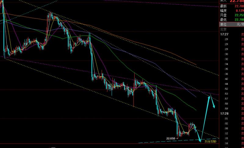 第二,白银方面:昨日走势同样偏弱,失守23关口,最低触及22.66;