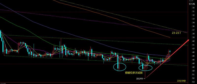 第二,白银方面:同样,昨日刺破前一日低点后迎来一波探底拉升,22.2-22.3出现一定企稳;
