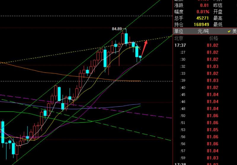 第三,原油方面:昨日欧盘出现一波跳水,破位前日低点81.8,最低触及80.4,刚好是日线中轨一线得到一定企稳;
