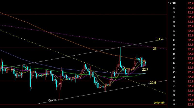 第二,白银方面:它的反弹力度逐步明显了,底部22.2基本出现了,连续两日并未刷新低,因此白银比黄金提前一步短期见底,昨日也拉升到了23关口;