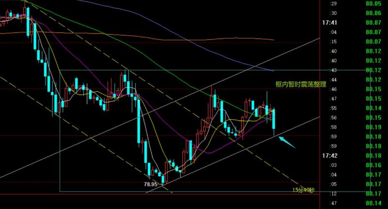 原油方面:日线昨日刺破中轨,收盘未站上,那么短期还可能震荡调整;今日欧盘又刺破了一次,仍是压制回测,阻力位81一线暂时存在一定双顶概率,支撑79.9,往下是79.2-79,先留意区间内震荡,强压是72一线,小时线年均线,也是日线10均线,此处是拐点,只有突破站上它,才能回归强势单边拉升;而处于72下运行,则暂时图中框内来回运行;