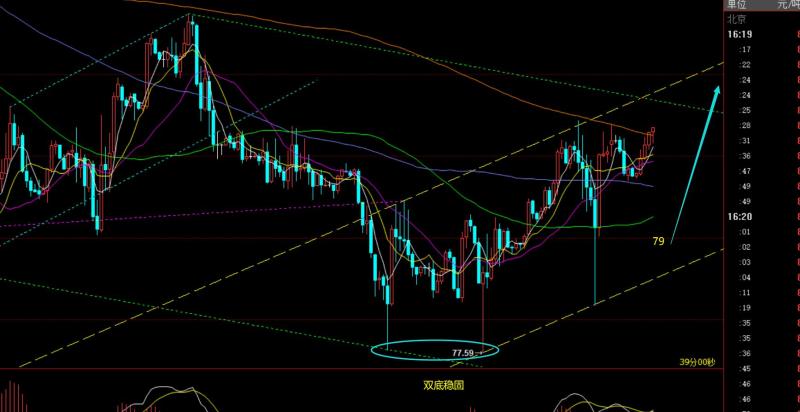 第三,原油方面:上周三至周五这几日可谓多空大幅上下洗盘,77.6-77.7一线两次支撑,也是日线年均线,作为短趋势多头的重要防守处,守住后两次都是V拉升破高,而上周五美盘又来了一次这样的扫盘动作,白天一路慢涨,晚上先打压至78.2,后半夜企稳拉升触及日内高点80.35;