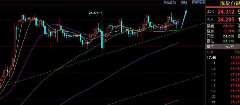 第二,白银方面:昨日研报指出24逢低可继续看涨,刚好给到入场点,短期目标阻力24.35到位;