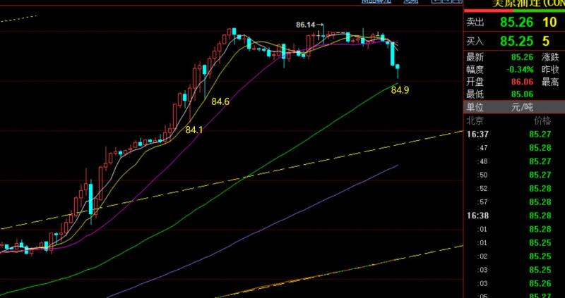 第三,原油方面:昨日84.8上支撑并未触及,运行于85.3-86高位窄幅横盘;