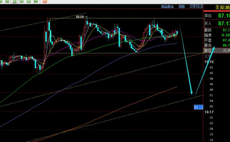 第三,原油方面:上周五指出九转序列已出现,高位多次88承压,出现横盘走法,不再去强势看破高逼空,认为随时会有短线调整的需求;亚盘连跌失守隔夜低点后,午后并未直接延续,而出现连阳破亚盘高点,继而步入了震荡反复走法,那样对于介入短空位置就相对不好把控,容易被刺破扫,主要止损也不想给的太多,试探阶段;