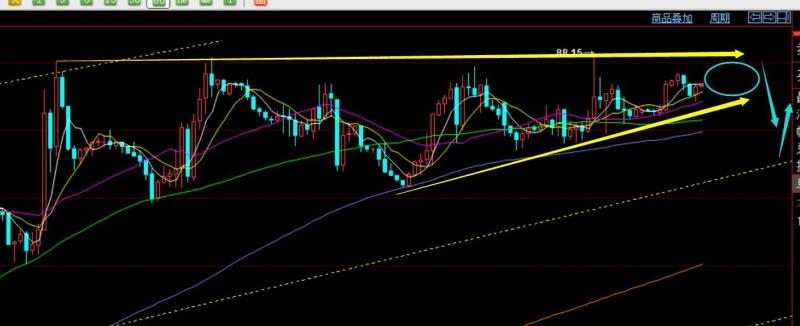 第三,原油方面:昨日再一次上冲88,但仍压制回测,继续运行于高位88-86区间;亚盘以为可以直接下挫,结果持仓一日,所幸美盘88高位进行补仓,最终保守下滑盈利收割;