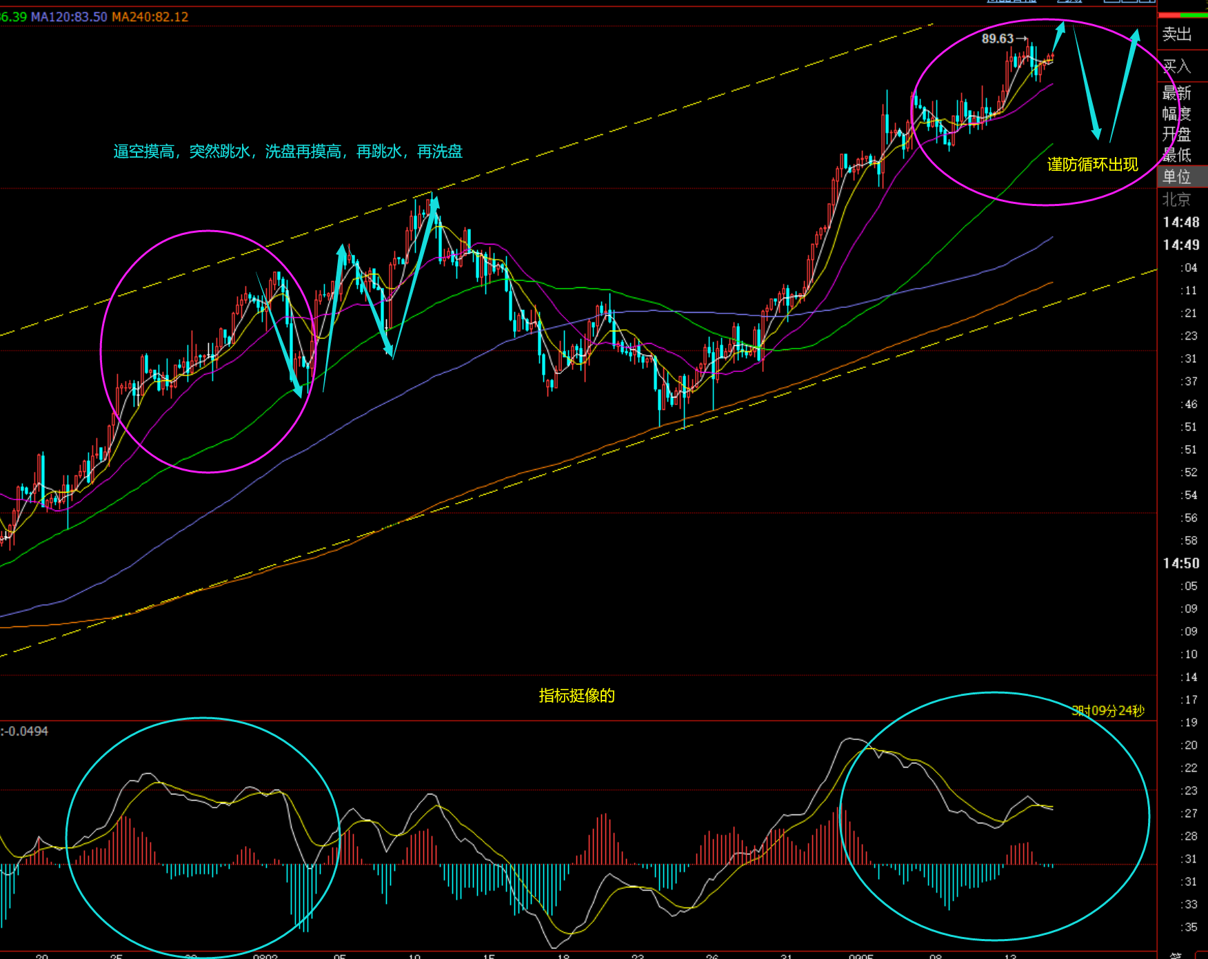回顾昨日行情走势及出现的技术点: