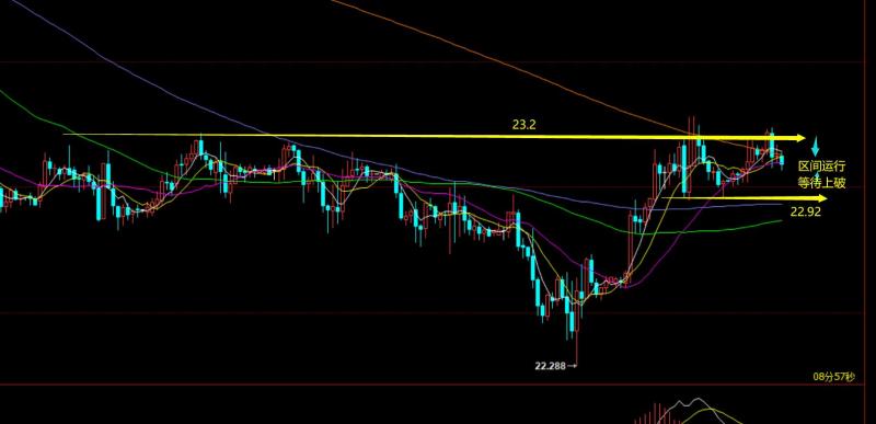 第二,白银方面:22.3底部支撑后,一路反弹再次给到23.2一线阻力;