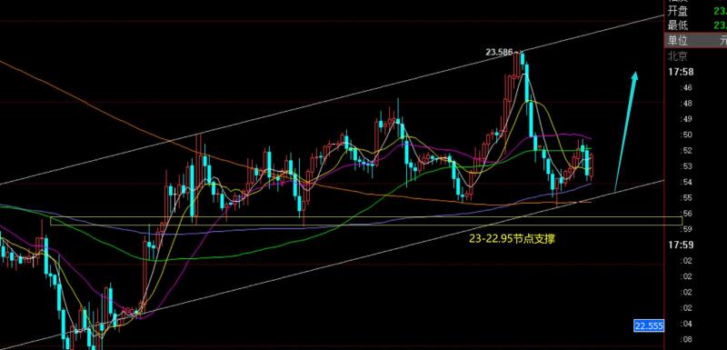 白银方面:节点支撑是23-22.95, 此位置上方运行,则还处于震荡反弹拉升中; 若失守了,短线才会走弱打压底部,短期阻力23.26,晚间若突破它上行,日内低点也就不容易跌破,会延续上行测试23.4-23.5;