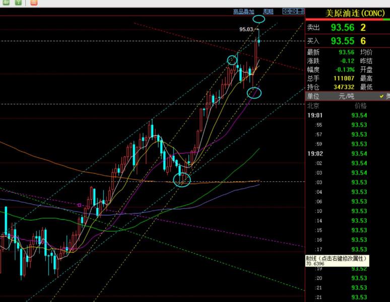 第三,原油方面:说来也可气,昨日早间直接大阳续涨逼空,则提出要跟多只能强势直接布局,给出90.8挂多,但价格给到90.9直接上去了,和黄金早上阻力空一样,都全踏空,看着它一路涨,不回测又进不了多,拍大腿,这在过往走势中,总会遇到这类情况;好在,价格抵达93.6上方日线趋势阻力和周线顶底压力后,给出94挂空,跌至93.4盈利了一小波,就是为了挽回黄金损失;