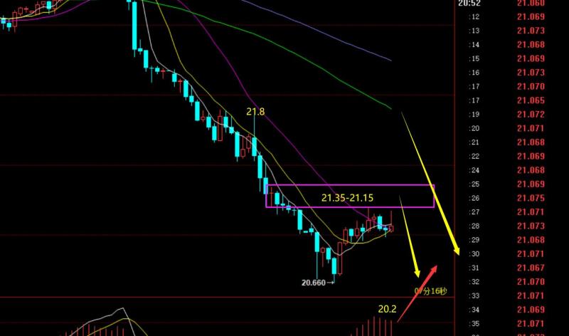 第二,白银方面:前面白银抗跌,这两天也被黄金带动加速跌,最低触及20.66一线; 同样的,只有日内反弹一波,才有机会放空,否则持续慢跌的走法,也没机会空; 今日从20.66支撑反弹至21.15,今晚留意承压信号,关注21.15-21.35区间,一旦压制,就还会试探低点,下一个支撑是日线下一条趋势支撑点20.2上;若向上冲破21.35,则转为震荡,阻力上移21.8下仍是等待压制回落,那样也可能开始底部区间整理;