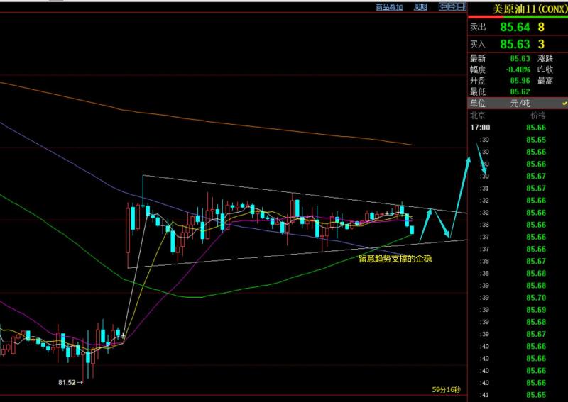 第三,原油方面:昨日整体还是卡在收敛三角内整理,因此短线得见好就收;盘中依次给出85.9多和85.3加仓多,欧盘一波触及86.7高点拿下一波;美盘85.6继续多,今日到位86.5再次拿下一波;
