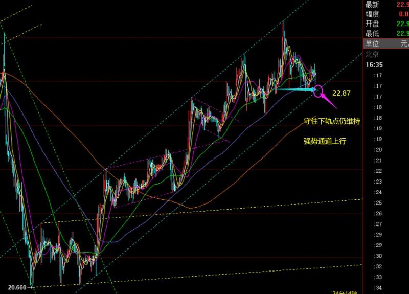 白银方面:日线昨日收阴,收盘于5均线23一线,今日是连阴还是收阳就比较关键;作为强势拉升行情,一般单阴是最好的,因此今日是希望是出阳,或者长下影K也行,继续留意23支撑,10均线上移22.7,这两处企稳来维持看涨; 图中小时线级别的通道下轨支撑点22.87也重点关注,看能否坚守住,也是这两天横盘的低点;