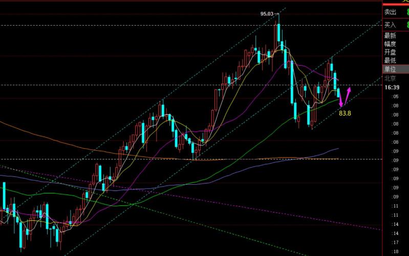 第三,原油方面:早间先依托通道下轨支撑86.8布局做多,抵达88拿下盈利;欧盘回踩87.3,也是618分割位置继续多,再次触及88盈利拿下;尾盘反复87.3多,失守86.8日内低点出局;昨日的观点就是依托通道下轨反复试探企稳,可惜最终并未守住;