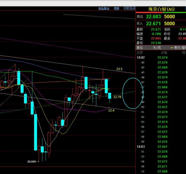 第二,白银方面:昨日依托23支撑也上涨一波,力度不太算,触及23.3下压制也跳水一波,失守23-22.9关键位置后,打到22.7;