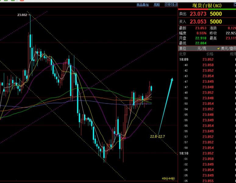第二,白银方面:昨日提出22.4支撑上仍看涨,短期风水岭22.78阻力,一旦突破则容易上攻23关口;
