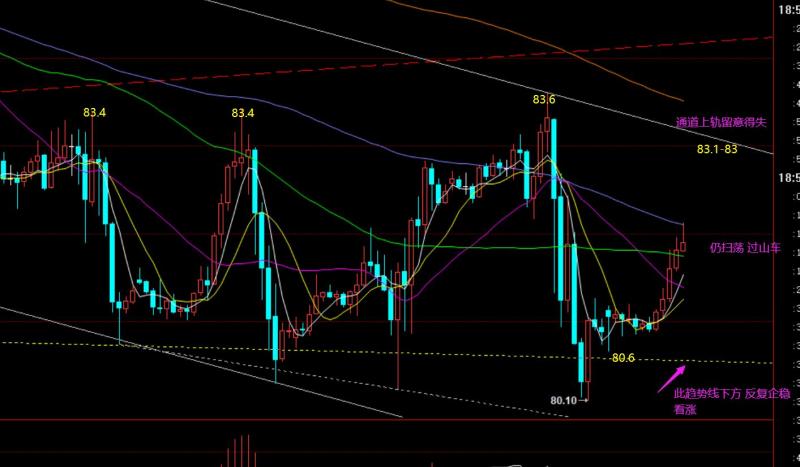 第三,原油方面:油价上周几天总体上依旧是过山车区间扫荡行情,突破阻力83.4并未延续,持续的拉升仍就带来大幅的下跌,破了前低后又出现持续的拉升,因为夜间给出了82上和80.6上波段分批多单,目前价格抵达82上方,由于位置入场不佳,可总体上不亏或盈利拿下;当然,相对低位的多单,可尝试看83及上方;