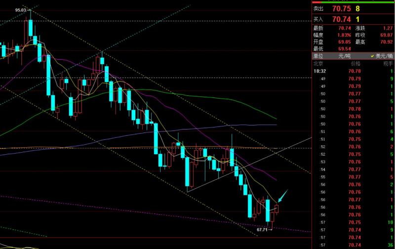 总结:71.3下也不好追涨,虽日内慢涨,但这几日油价比较容易突袭反复,若还有回调区间底部的机会,比如68上方,则考虑做底仓波段看涨一次,或者突破站稳72后,也会考虑后市上攻;