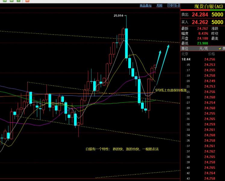 第二,白银方面:昨日白银倒是震荡背离式慢涨,从23.8缓慢拉升至24.2,等待回测一波去看涨自然是没机会下手;
