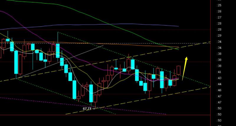 原油方面:昨日刺破收敛三角通道上轨,收阳仍处于通道末端内进行,但今日看似有力度了,和黄金一样,直接续涨,当前连阳形态一旦成立,既打破阴阳切换震荡格局,也走出底部收敛三角,再配合周线级别即将中期发力的信号,认为原油也或同步黄金,即将结束短期下跌,迎接一轮拉升;较为可惜的是,周初71上方指出的波段底仓,被这几日来回过山车给无情的震出了,没有坚持拿住,可能再也给不到71这相对好的低位;真要去把握,就只能以今天低点72.9作为风水岭防守,能拉低一下,74下方去考虑出企稳信号看涨,今日切勿盲目看跌,因为已有上破的迹象;