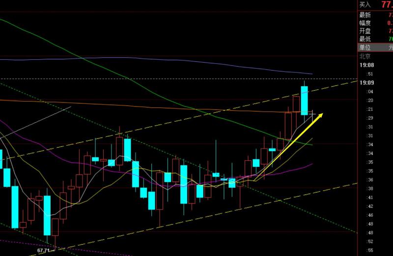 原油方面:一路连阳单边走高后,昨日出现一根大阴,按照正常走势来看,这大阴是作为前面一路拉升之后的短暂修正,也就是说今天最好要出现收阳形态,之后会再继续连阳上攻,极限修正的位置是10均线75.3附近,这里肯定不能失守,否则这一波中期上攻又会浇灭;今日到现在整体波动不大,短期上涨通道的下轨支撑上移76.7-76.8, 要守住此位置则通道运行会完好,破高也就是时间问题; 反之,守不住通道下轨,短线就会延续昨日的调整,去试探75.3的可能,然后再看企稳;