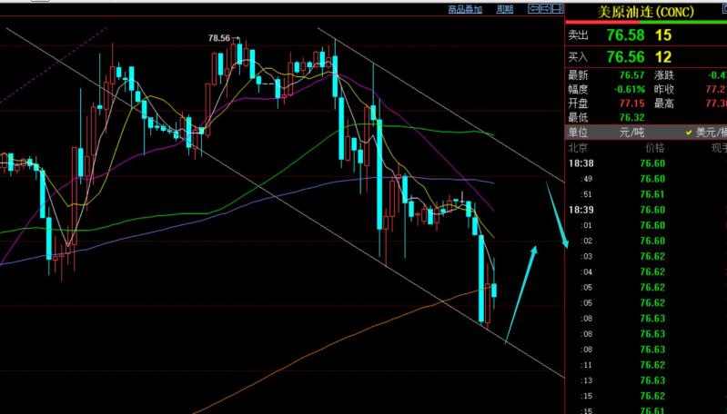 原油方面:短线这两日开始了震荡下调,今晚关注76.2-76.3下轨支撑,77.5上轨阻力;也看日线级别能否守住中轨76.1;